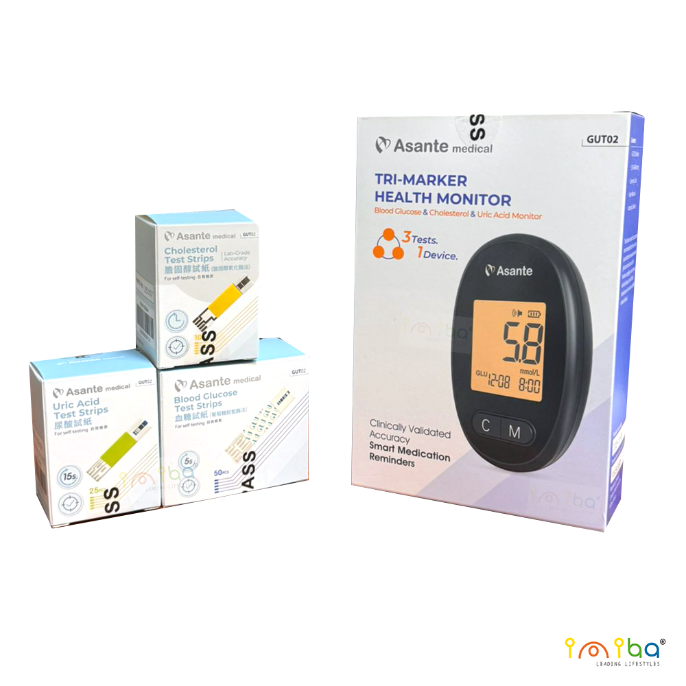 Asante 3合1血糖尿酸膽固醇測試儀套裝(主機+血糖試紙50張+膽固醇10張+尿酸10張+50支針)